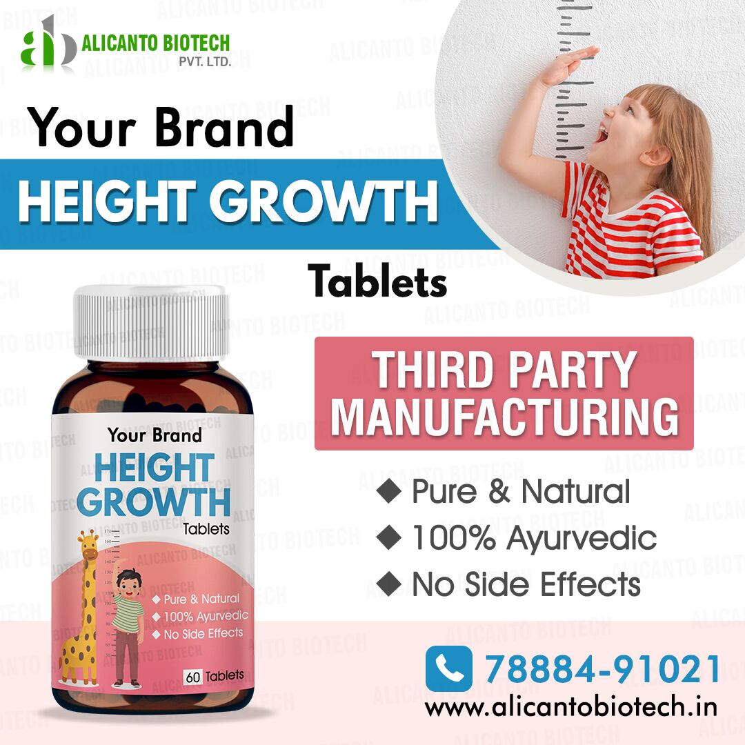Alicanto Biotech is a trusted Height Growth Tablets Manufacturer in India, offering high-quality Ayurvedic supplements to support natural height increase. With advanced manufacturing facilities and strict quality control, we ensure safe, effective, and herbal formulations. Our third-party and private label services help businesses launch their own height growth products. Partner with Alicanto Biotech for reliable and GMP-certified height growth tablets.