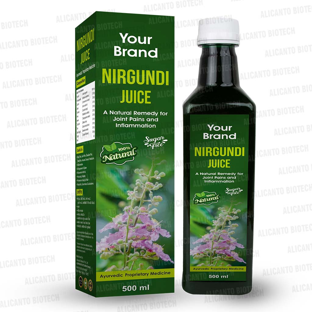 Alicanto Biotech is a leading Nirgundi Juice manufacturer, offering pure, herbal and GMP-certified formulations. Made from fresh Nirgundi (Vitex negundo) leaves, our juice is known for its anti-inflammatory, pain-relieving and immunity-boosting benefits. We provide third-party manufacturing and private labeling services, ensuring high-quality standards, customized packaging and timely delivery. Trust Alicanto Biotech for premium Ayurvedic juice manufacturing and grow your brand with authentic herbal wellness solutions.