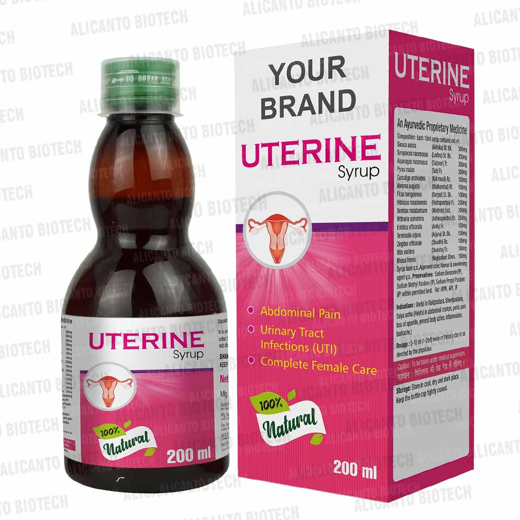 Alicanto Biotech is a trusted Uetrine Syrup manufacturer committed to quality and innovation in Ayurvedic healthcare. We specialize in third-party manufacturing of Uetrine Syrup, formulated with natural herbs to support women’s health. Our GMP-certified facility ensures purity, efficacy, and compliance with industry standards. Partner with us for premium Ayurvedic syrup manufacturing with customized formulations, private labeling, and competitive pricing. Choose Alicanto Biotech for reliable and high-quality herbal solutions.